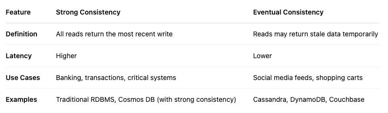 NoSQL : Many NoSQL databases follow an eventual consistency model, prioritizing performance and availability over immediate consistency, suitable for applications where slight delays in data consistency are acceptable.